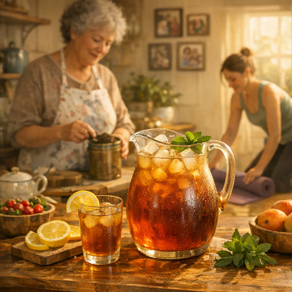 Picture 1946. Post-war America buzzes with optimism. In a sunlit kitchen, a grandmother brews real tea leaves from Nilgiri, India—not powder, not concentrate. She chills it simply: ice from the tray, a touch of real sugar. Pours it into her favorite pitcher with a wide mouth perfect for sharing.
